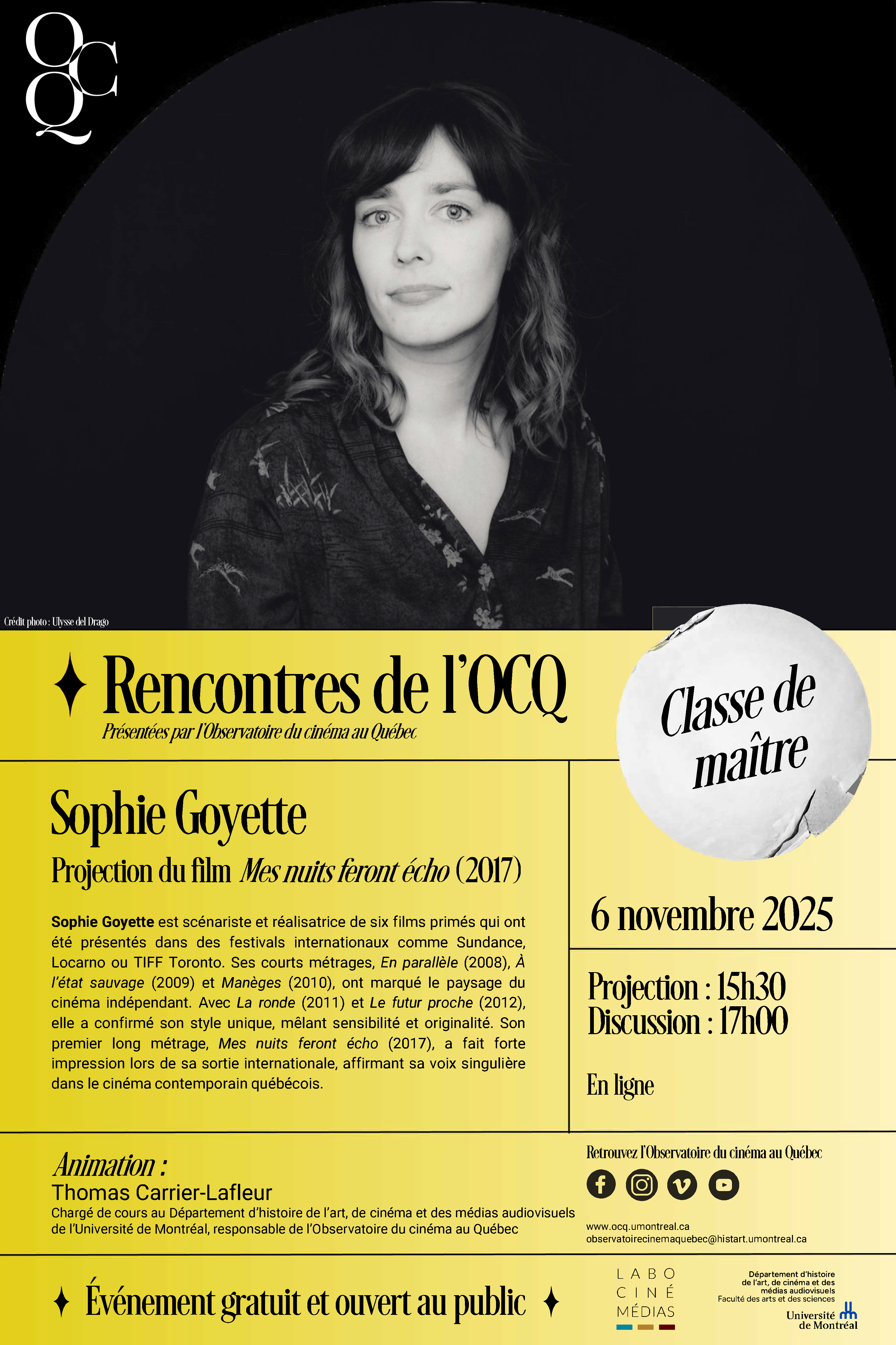 Classe de maître avec Sophie Goyette Voir l'image agrandie Quand ? 06/11/2025 3:30 — 6:30 Quoi ? Classe de maître OCQ Mardis OCQ grafics2025-11-05T13:43:56-05:00